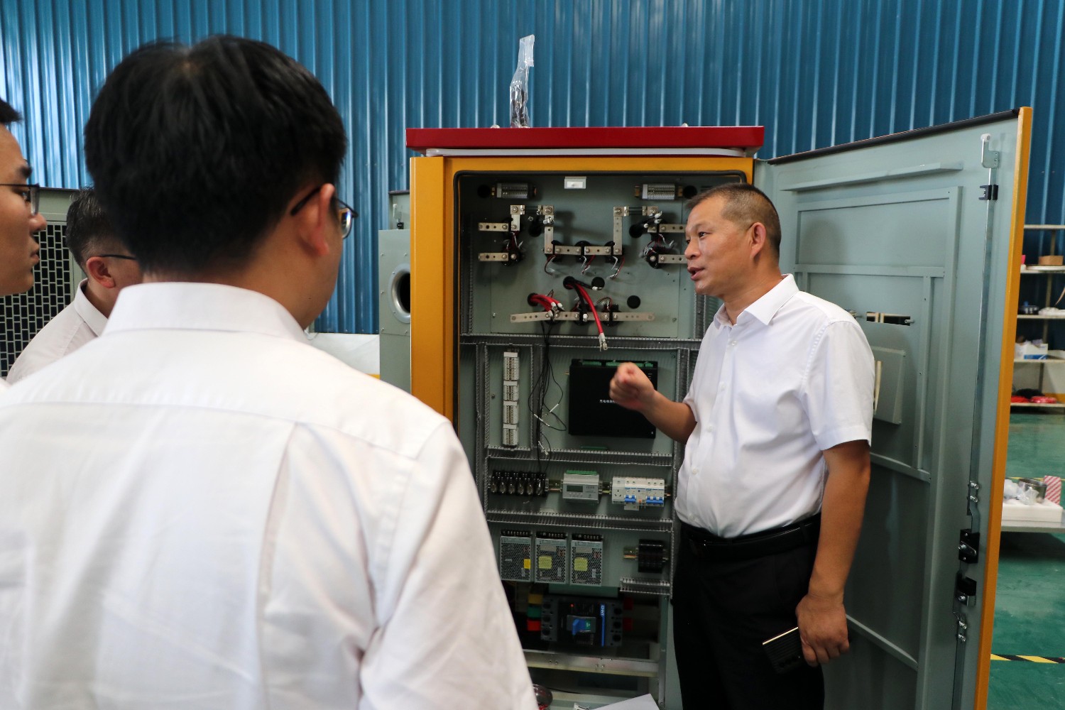當天下午,公司孔總陪同領導參觀公司充電樁生產(chǎn)制造車間。